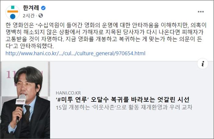 오달수의 '은근슬쩍' 복귀?- 페미니즘 법정의 충실한 검찰이자 판관인 한겨레