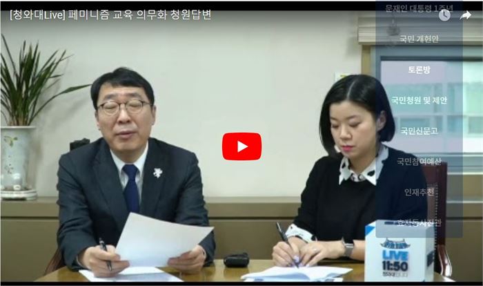 “왜 여자아이들은 운동장을 갖지 못하지?”지난 1월 6일 청와대 국민청원게시판에는 '초.중.고 학교 페미니즘 교육 의무화' 청원이 올랐다. 이 청원은 만료기간인 2월 5일 21만3,219명의 서명으로 마감됐다. 청와대는 20만 명 이상이 참여한 청원에는 답변을 하기로 한 방침에 따라 2월