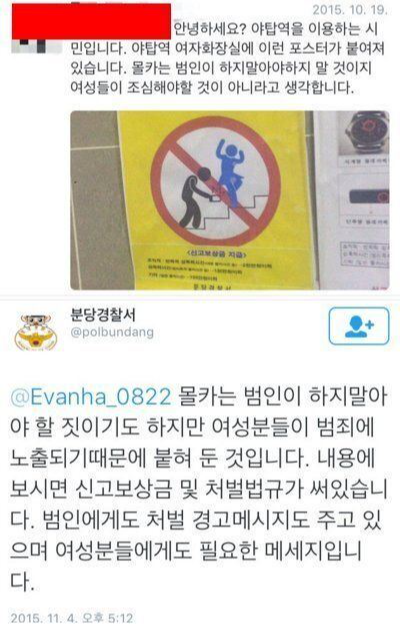페미니스트 진영은 우리 사회에 보편적으로 통용되던 개념들을 지속적으로 왜곡시켜왔다. 성적 수치심 또한 그 가운데 하나이며 이는 피해자 중심주의와 연관되어 있다. 예를 들어 지하철의 에스컬레이터 또는 특정한 구역에서 신체를 촬영하다 걸린 사례들이 있었다. 관할 수사기관과 지자체에서는 "불법촬영 범죄가 일어난 곳이니 주의를