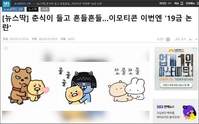 얼마 전 카카오에서 화재사건 피해 보상으로 이용자 모두에게 이모지를 지급했다. 이 가운데 몇개가 음란한 성행위를 연상시킨다며 맘카페에 걱정하는 글들이 올라온다는 기사가 보도됐다. 나도 기사를 보기 전 '춘식이 들고 흔들흔들' 이모지를 보고 웃겨서 친구한테 '이거 음란한데 나만 쓰레기야?'라고 농담을 보냈는데 친구가 '