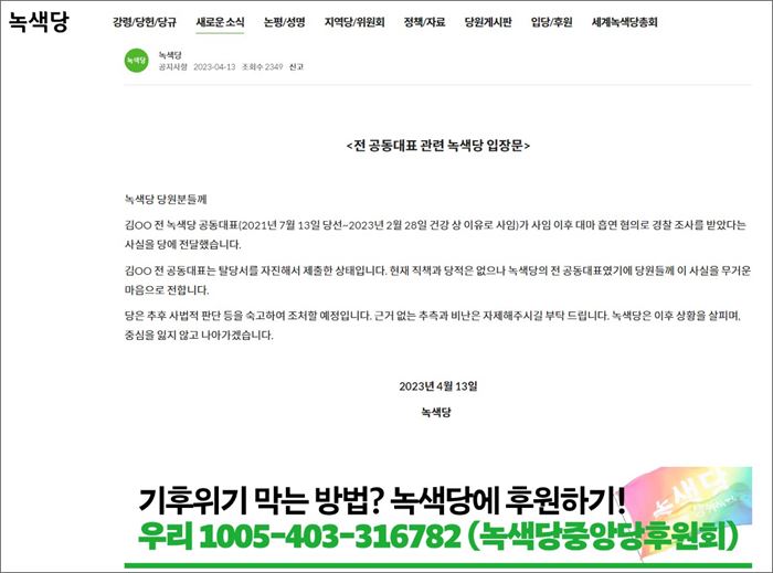 [단상] 녹색당 대표 마약사태로 보는 진보라는 진영의 특성