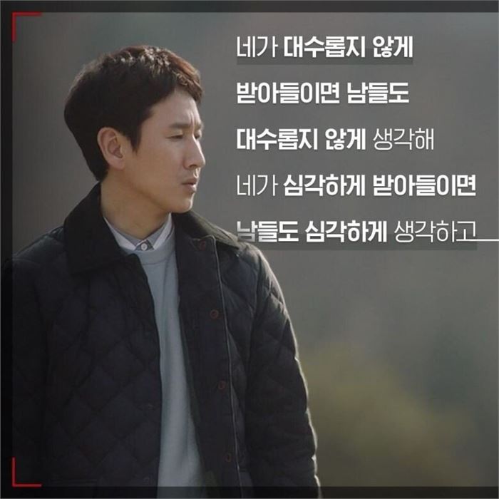 아래 대사는 자기계발서나 힐링서, 멘토링서적 수십권을 압축한 것 같다. 짧은 대사 몇 줄이 어디에서도 얻지 못했던 위안과 위로를 주고, 삶을 대하는 태도까지 성찰하게 한다. 이것이 문화예술이 가진 힘임을 새삼 깨닫는다. 인간에 대한 이해가 깊을수록 창작물의 수준은 높고 깊어진다.