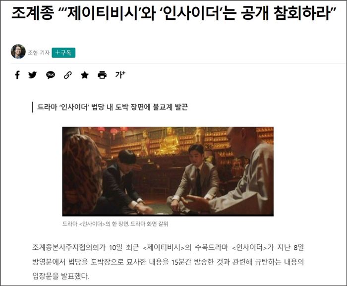 최근 불교계가 자신들을 부정적으로 표현한 장면 때문에 드라마의 폐지까지 요구한다는 기사가 보도됐다. 법당에서 도박판을 벌이는 극 중 장면 등이 문제가 됐다.