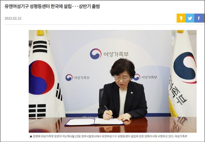 아태지역 유엔여성기구 성평등센터 설립 문제는 정부의 조직개편 후 해당 업무에 가장 적절한 기관이 맡아서 대응하면 될 일이다.