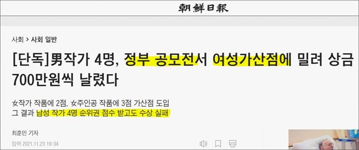 ▶창작자와 창작물에 여성이 들어가기만 하면 국가기관이 공모전에서 가산점을 준다거나,