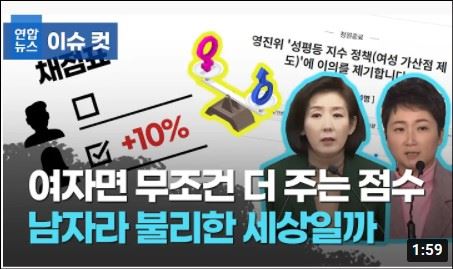 영진위는 여성가산점 제도가 정당한 성평등 조치라 주장한다.(연합뉴스 기사화면)
