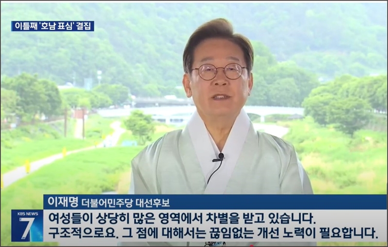 21대 대통령 선거에서 당선이 유력한 더불어민주당 이재명 후보의 '구조적 성차별'이 존재한다는 발언. 그 근거로 임금과 승진 등에서의 차별을 꼽았다.