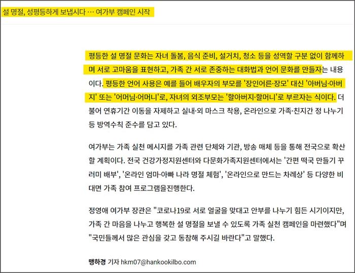 ⓶ 평등명절 캠페인: 장인어른·장모님 대신 아버님·어머님으로