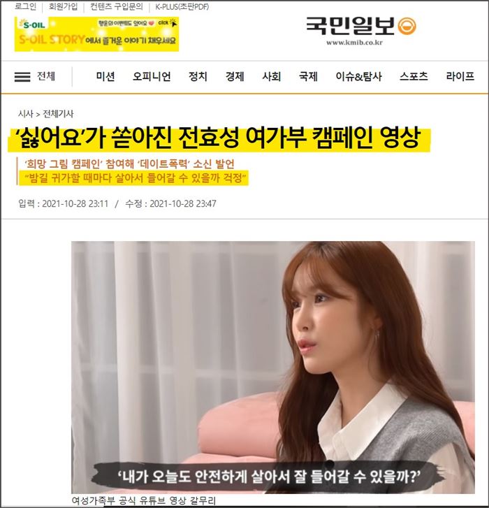 ⓵ 여성 연예인 출연 데이트폭력 방지 캠페인: “내가 오늘도 안전하게 살아서 잘 들어갈 수 있을까?”