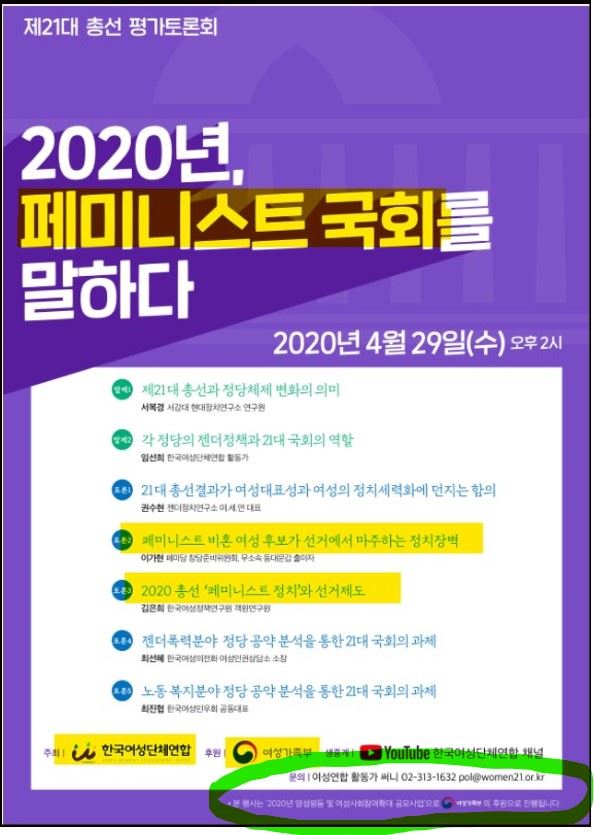 ④ 여가부 후원 여성단체들 주관 토론회: 2020년 페미니스트 국회를 말하다