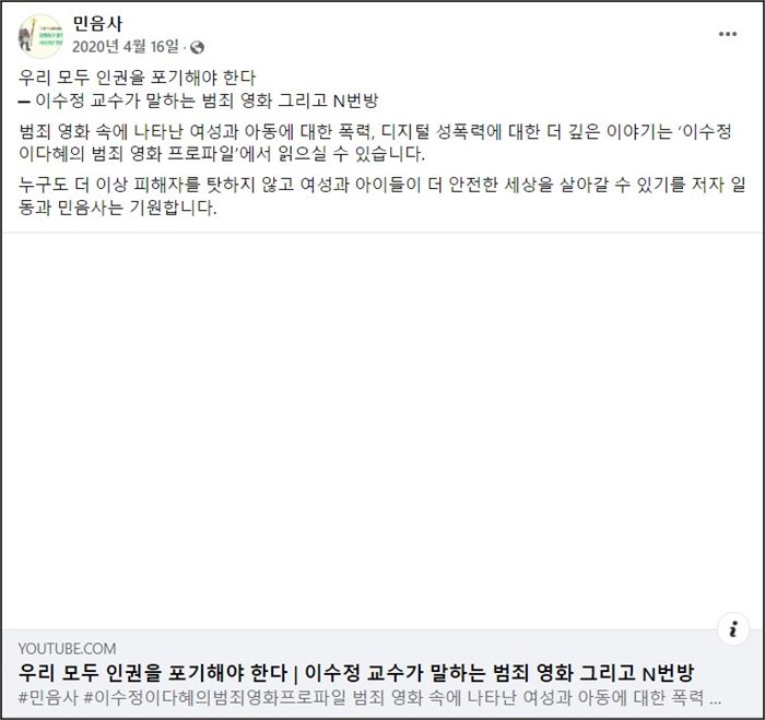 우리 모두 인권을 포기해야 한다 / 이수정 교수가 말하는 범죄영화 그리고 N번방: 영상요약