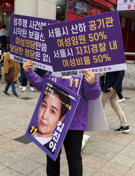공공기관과 자치경찰 내 여성비율 50퍼센트를 주장하는 여성의당.