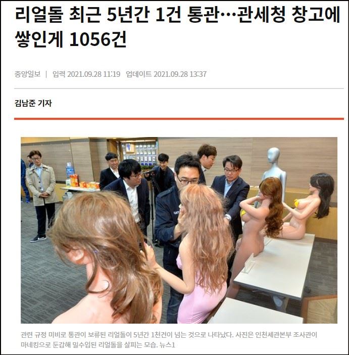 (관련기사: 리얼돌 최근 5년간 1건 통관···관세청 창고에 쌓인게 1056건)