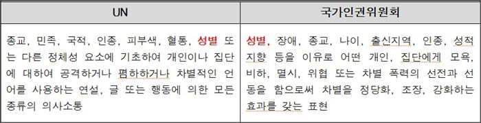 UN과 국가인권위원회의 혐오표현 정의 비교