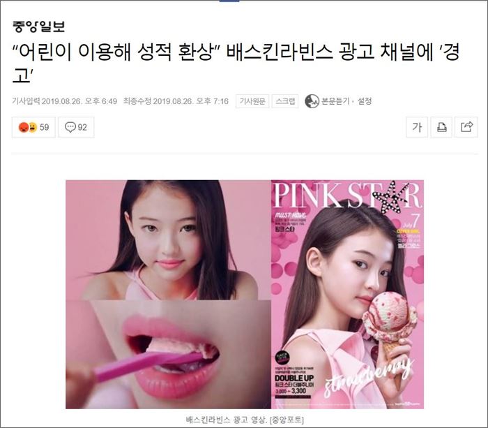 섹시한 컨셉의 여성 아이돌은 성상품화라며 비난을 받고, 여자 아동은 성인의 섹시한 컨셉을 모방했다는 주장으로 CF가 삭제된다.