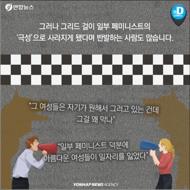 당사자들의 반발에도 불구하고 페미니스트 진영의 요구로 퇴출된 그리드걸