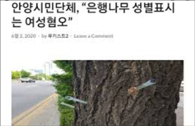 은행나무 암나무 표시가 여성혐오라며 철거시킨 안양여성연대