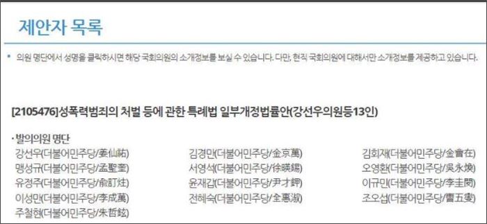 비동의녹음죄 발의 의원 명단