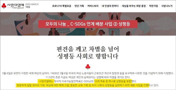 (관련글: 불우이웃돕기 모금을 페미잔치에 지원한 사회복지공동모금회)