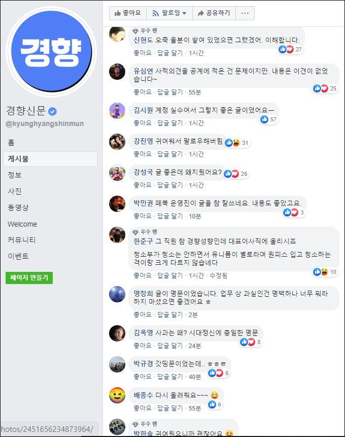 이들의 비윤리적 돌발행동으로 피해를 입고 사태를 수습하는 건 언제나 조직 전체와 상급자, 다른 동료들의 몫이다. 해당 사과문에 달린 댓글들을 보면 계정 운영자와 같은 인식을 가진 지지자들의 모습을 볼 수 있다.