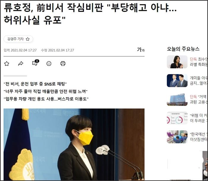 특히 경향신문의 소셜미디어 계정을 관리하던 여성(페미니스트로 추정되는)은 '왜안돼왜안돼왜안돼... 류호정 짱!!'이라는 맥락모를 격한 응원을 보내다가 결국 경향신문이 공식 사과를 해야했다. 직업인으로서 책임의식보다 자신들의 이데올로기에 더 충실한 페미니스트들이 종종 보이는 행동이다.