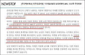 이 또한 이상한 주장이다. 범죄가 일어났을 때 해당 범죄의 피해 관련 현황을 언급하는 것은 특별한 일이 아니기 때문이다. 다른 범죄에서도 피해 유형이나 피해 통계 등을 거론하는 일은 흔하다. 무엇이 부적절하다는 것인지 뉴스톱의 이 주장이 오히려 초점이 맞지 않는다.