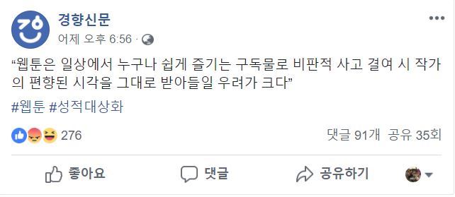 국민을 판단력 없는 바보로 여기고 내가 허락한 창작물만 보게해야 한다는 검열논리는 전두환 정권이나 경향신문이나 같다.