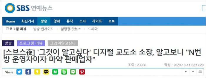 같은 시기 최소한 ‘논란’이라는 단어라도 사용한 다른 매체의 보도와 비교해도 편파적인 옹호다.   디지털교도소장 잡고 보니 N번방 운영자 지난 10월 11일, 한 시사프로그램에서는 경찰 인터뷰를 통해 해외에서 검거된 디지털교도소장이 N번방의 운영자였다는 사실이 보도됐다.