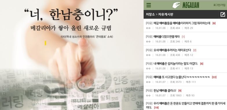한남충이라는 비하어를 새로운 규범이라 칭한 페미니스트 진영