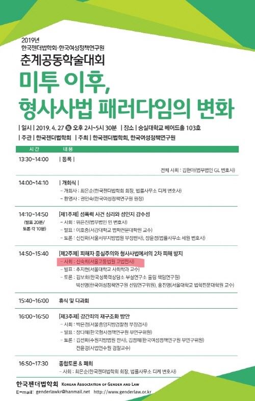 여성 법관으로서의 정체성과 소명이란 무엇을 말하는가? 여성은 약자, 여성은 피해자라는 여성 피해의식, 여성 피해서사들을 내면화한 것을 의미한다. 젠더법학회, 젠더법 연구회 등의 발표회와 연구들을 보면 주력하는 주제가 성폭력, 성범죄 분야다. 이들은 피해자 중심주의, 2차 가해, 여성 피해자 보호들을 페미니즘 논리에 입각해 정의하고 이를 사법부에 도입해 계속 판결에 영향을 주려 노력한다. 이런 조직의 출신들이 사법부의 최고 판단기구인 대법원의 대법관으로 진출한다.