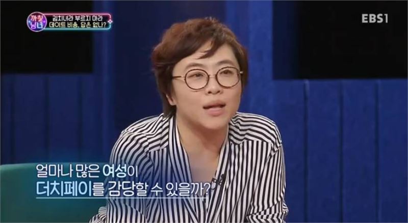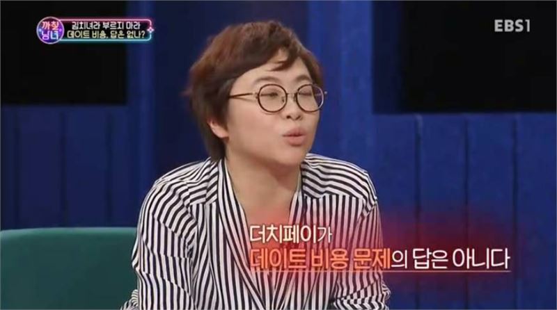 까칠남녀에 출연한 페미니스트 손희정, 은하선은 데이트비용을 남성에게만 전가하는 여성을 주위에서 본 적이 없다며 부인했다.