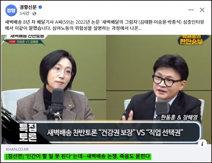 새벽 배송 금지 논쟁에 불을 당긴 한동훈 장혜영 두 정치인의 토론